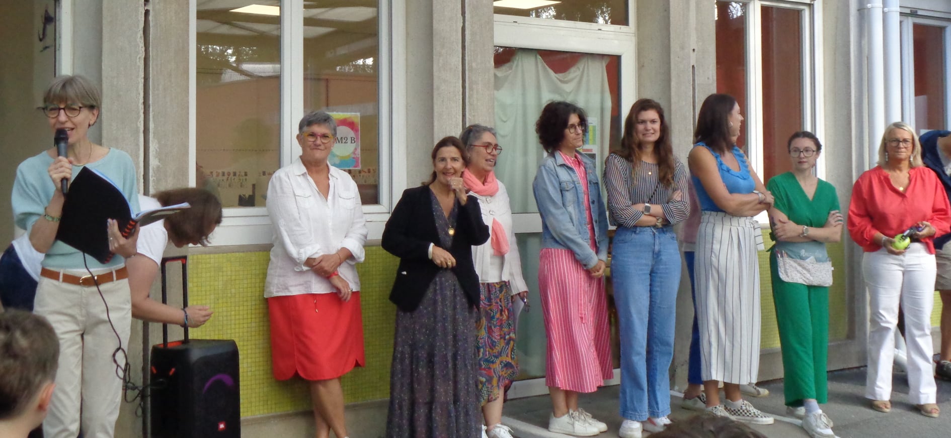 Un par un appelés, les élèves quittent la cour pour suivre leur enseignant-e dans leurs classes respectives. Bientôt viendra le tour des petits élèves de maternelle d’entrer dans la joyeuse sarabande d’une rentrée que l’on souhaite aussi joyeuse que studieuse pour toutes et tous.