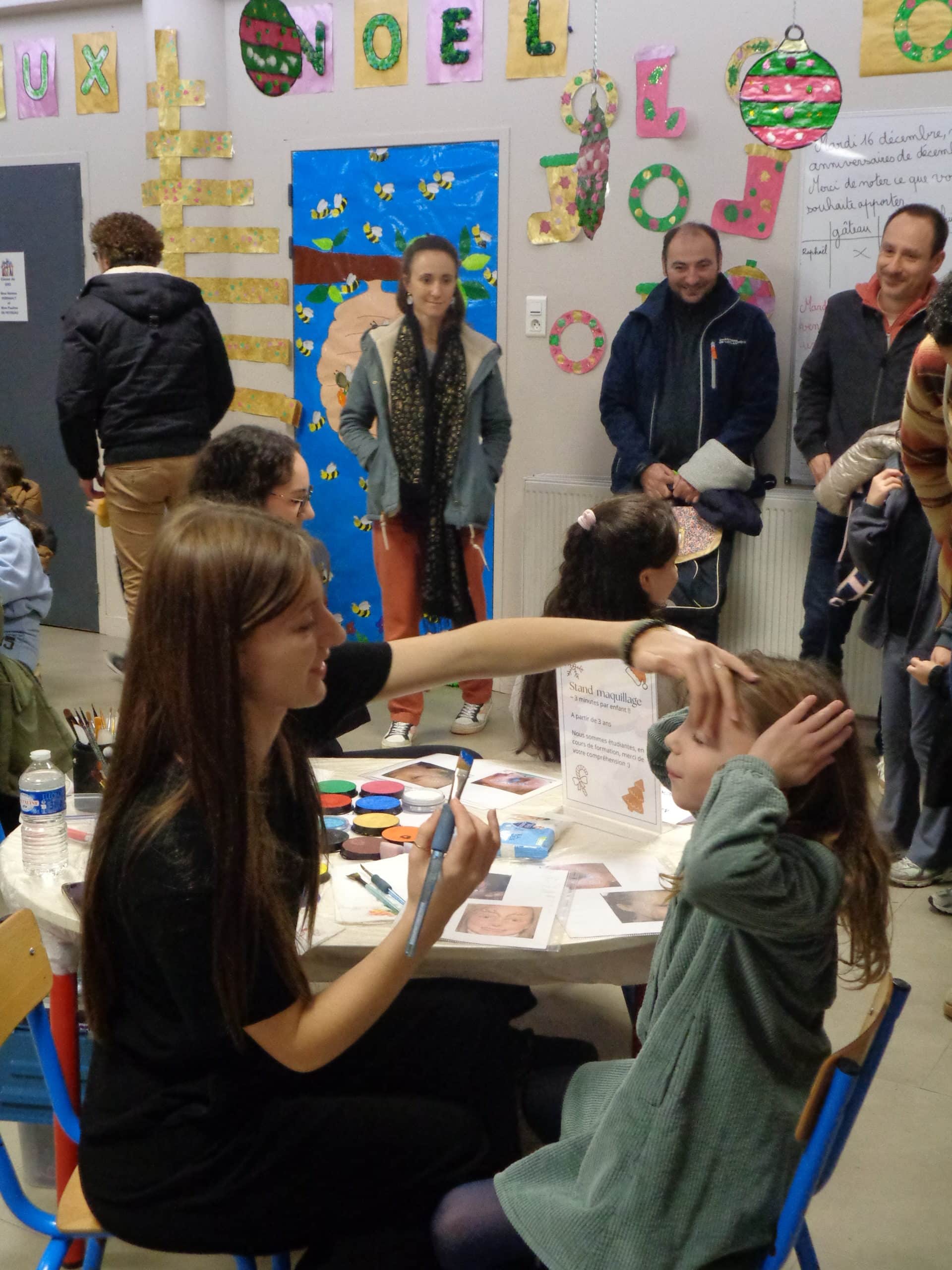 La période de l’Avent est toujours riche d’activités à l’école. Activité maximale pour la décoration des classes et des couloirs des maternelles. Cette année, rose, vert et or ont été élues couleurs phares de l’école. Arrivent les préparatifs pour le marché de Noël. L’occasion de fabriquer quelques bibelots, de cuisiner des biscuits au cours d’ateliers mixant petits et grands. Le marché de Noël avec ses stands de créateur, son atelier maquillage, ses bonnes odeurs de crêpes et pop-corn, sans oublier le passage du Père Noël, aura vu affluer une joyeuse foule d’élèves et de parents.